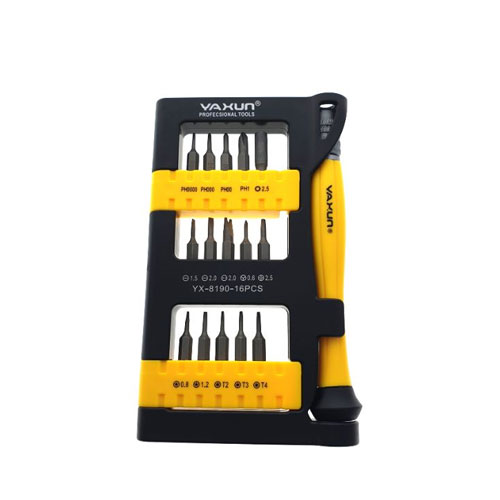 در ست پیچ گوشتی یاکسون Yaxun YX-8190 تمامی پیچ گوشتی هایی که کاربرد آن ها در تعمیرات الکترونیک